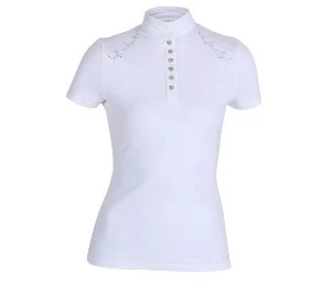 A delicate sprig detail is picked out in diamante trims to give the Aubrion Lincoln show shirt a little sparkle. Slim fitting with lightweight, high elasticity performance and dry-fit optimal breathability technology. Style detail: diamante detail, five diamante button fastening, ultrafine sheer vapour release shoulder insert, elegant back pleat, smart stock collar, soft and stretchy, Aubrion badge.