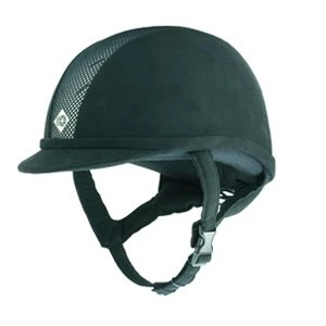 The stylish Ayr8 by Charles Owen is taking the show jumping circuit by storm, with leading lady rider Ellen Whitaker making heads turn whenever she steps into the ring. The low profile helmet combines fashionable microfibre suede side panels, with a mesh centre to maximize air flow through the 12 ventilation apertures, achieving the perfect combination of cool equestrian chic. Developed for the equestrian athlete the slimline helmet uses advanced modern materials and incorporates the latest in thermoregulation for helmets to keep your head cool. The soft suede harness incorporates the revolutionary Gpxâ„¢ technology which creates a snug and secure fit using scientifically designed grippers. The harness is coordinated to the specific colours within the range to give that complete finished look. The brim is gently rounded to flatter the face and a press stamped metallic logo is positioned centrally above the peak. Another embroidered logo features on the back of the helmet to replace the traditional ribbon . The supersoft headband is embedded with high tech silver ions, providing built-in antimicrobial protection, helping to keep the helmet hygienic and free from smells. Kitemarked to PAS015 and BSEN 1384