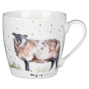The mug is made from fine china and has a capacity of 400ml, more than enough space to hold your hot beverage of choice. The front of the mug features a spectacular illustration of a black and white sheep which is stood, looking at the artist. The design is painted in a watercolour style, with neutral shades of cream, brown and grey which contrasts beautifully with the crisp white background.
