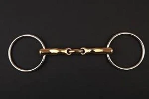 The Balancer bit is a three section loose ring snaffle. It gives soft and even pressure from a curved three section mouthpiece and promotes a light contact and enables easy directional aids.