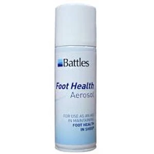 Battles foot health aerosol is effective for maintaining foot health. Will treat approx. 150 feet. Contains a blue dye for ease of identifying application. Contains PCMC.
