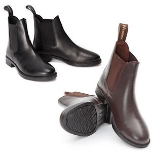 These leather pull on jodphur boots are smart enough for shows but practical enough for everyday use aswell. They feathure a soft leather upper with synthetuc lining anda neolite sole with channel stitching as well as elastic side gussets, perfectly co-ordinate with Saddlecraft Leather Gaiters
