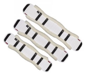 Designed to contour round the girth with the rolled edge protecting the sides of the leather girth. Soft Merino+ Lambswool on one side with a rolled edge and cotton fabric on reverse with two elastic & two adjustable velcro straps that can be pinched tight to accommodate width variations.