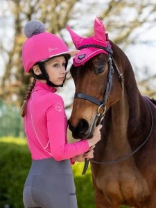 Supporting the signature LeMieux Loire embossed metal motif these luxurious fly hoods are a stylish addition to the collection. Beautifully made from three-way hand knitted crochet with a luxurious satin fabric front piece and soft stretch Lycra ears.
