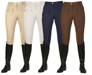 The kaikoura are a pleated front ladies breech. The four way stretch fabric is made up of a Cotton, Micro-Fibre and Spandex mixture which is durable, comfortable and breathable. They have a self fabric Euro Seat with no inner seam and ultra grip knee patch with embossed Mark Todd logo. Other features include a wide 4cm waistband, belt loops, two side pockets with Mark Todd stud popper closure.