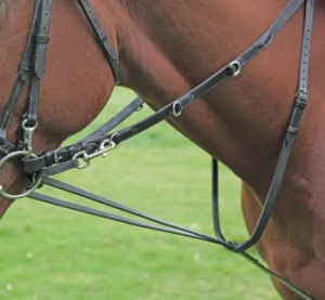 Training aid to use while riding. Encourages the horse to work in the correct outline by using a martingale style device which clips onto the d-rings on the reins which are provided.