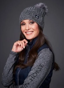 Knitted cosy and warm hat in a melange yarn.