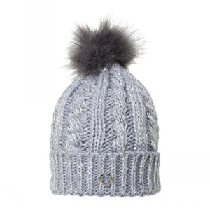 Trendy knitted hat of sequin yarn with a small MH logo at front and half fleece lining around the head for extra comfort