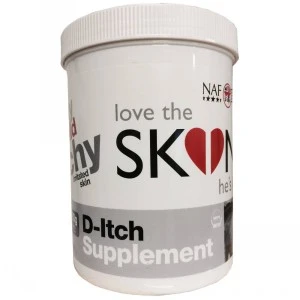 The NAF Love the SKIN he’s in D-Itch Supplement is a special formulation to help your horse fight unpleasant spring and summer skin irritations.