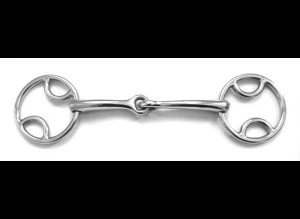 From a size 5″ upwards the ring size increases to keep the bit in proportion for larger horses. Mouthpiece thickness: 12mm (4″), 14mm (4.5″-6″). Cheek height: 55mm (4″, 4.5″, 5″), 70mm (5.5″).