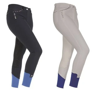 Stretch leg cuffs reduce bulk and a subtle matt silicone print to the self-fabric contour seat and strappings help keep the rider secure in the saddle. Also featuring four pockets, belt loops, zip fly, secure slide button, colourful pocket details and Team Shires embroidery.