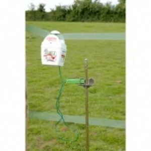 The Wolseley Bug energiser is a mini fencer with attitude! This versatile compact power packed unit is suitable for short runs of fencing and can be suspended directly from the fence to be energised, simply turn the top nut quarter turn anti-clockwise insert tape and return nut quarter turn clockwise until it locks in position The green earth connection can then be clipped onto a suitable earth stake which is pushed into damp ground The Bug can also be mounted on a metal earth stake and power connected from the output terminal of the unit to the fence via a HT lead assembly. (Earth stake and HT lead assembly available separately) CE Approved 2 year warranty
